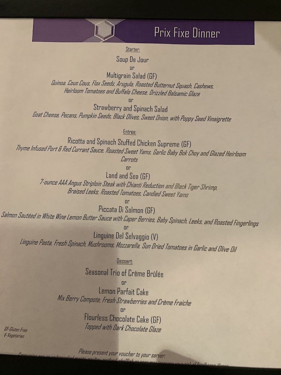 As the sun sets, the menu transitions into an impressive array of dinner choices. Start with the Caesar Salad, featuring crispy romaine hearts and double-smoked bacon, or indulge in the rich Soup of the Day, paired with a warm baguette. These appetizers set the stage for the more extravagant mains like the Grilled Cape D’Or Salmon, perfectly complemented with a Pommery mustard dressing and seasonal vegetables—a dish that embodies freshness and finesse.